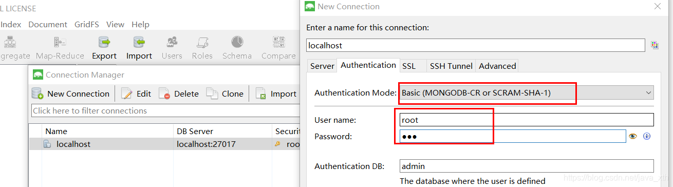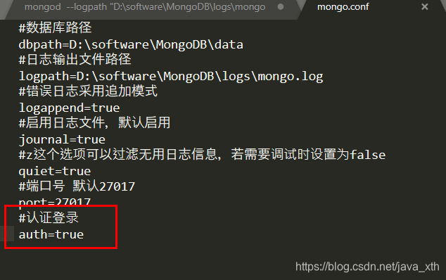 接下来会发现无法使用认证模式,如果在mongodb.conf中添加