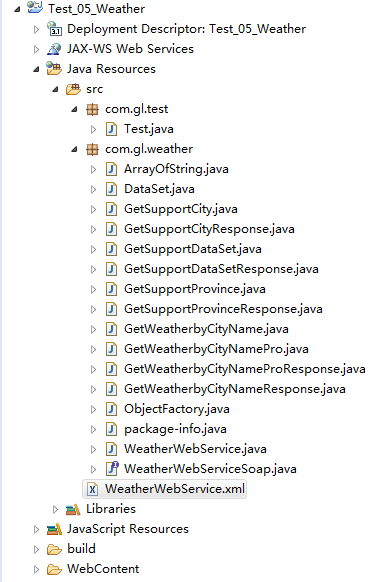 其中com.gl.weather包里面的信息,是自动生成的。