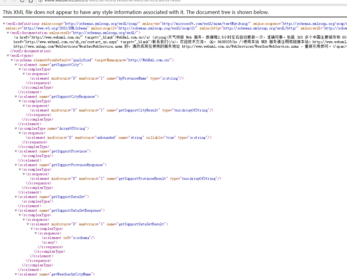 先在百度上找到天气预报的webService的wsdl。http://www.webxml.com.cn/WebServices/WeatherWebService.asmx?wsdl