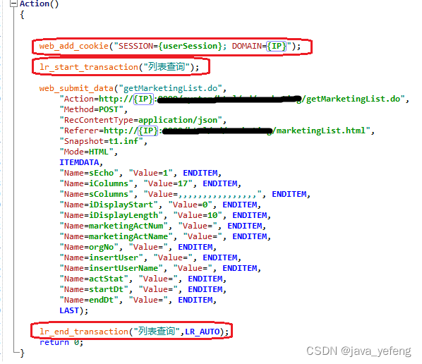 2.一般不用处理vususer_init\vuser_end,直接编辑Action