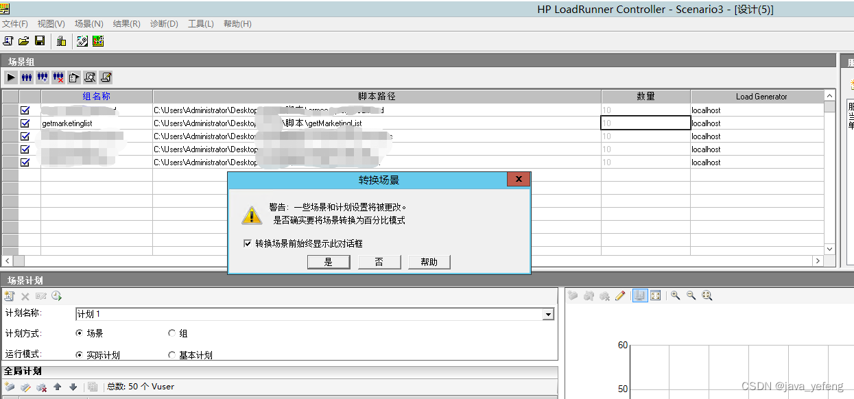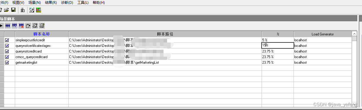 各个交易的并发用户数按百分比设置:场景-》将场景转换为百分比模式(V),选择“是”