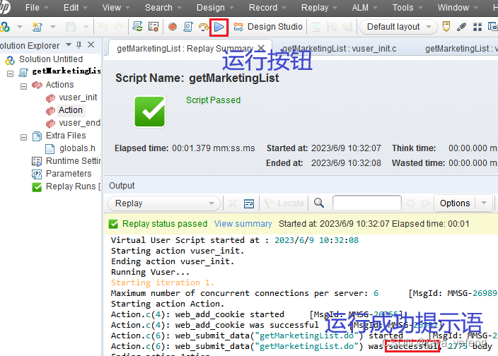 此时点运行按钮,提示“successsful”,那么恭喜你,初版脚本完成了;