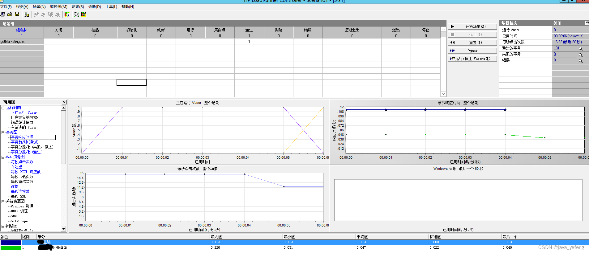上图的标识1、2分别为开启事务、结束事务。事务是性能测试用来评估性能状况的基本单元;
