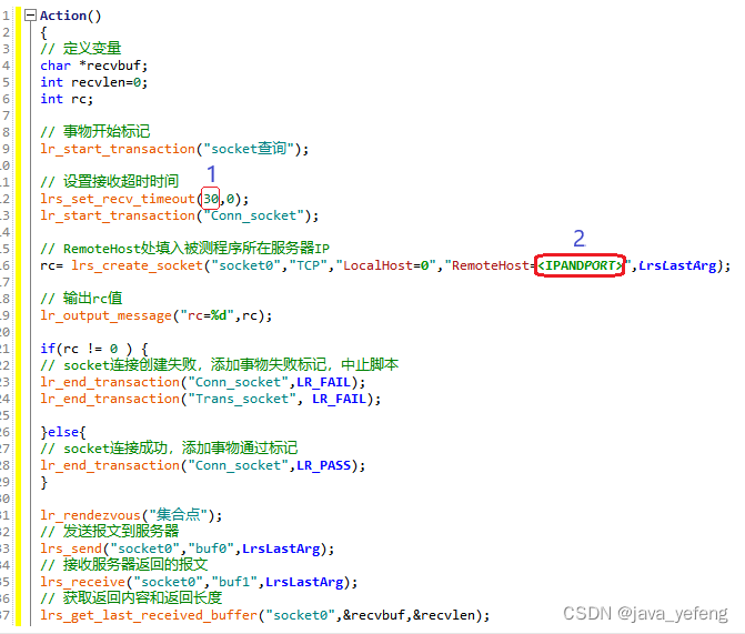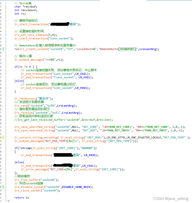 LoadRuner11 socket脚本如下,可参考此案例编写socket脚本