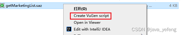 右键getMarketingList.saz,选择Create VuGen script,自动唤起HP Virtual User Generator,界面如下图;有文件下载的弹窗,是否保存,直接取消。