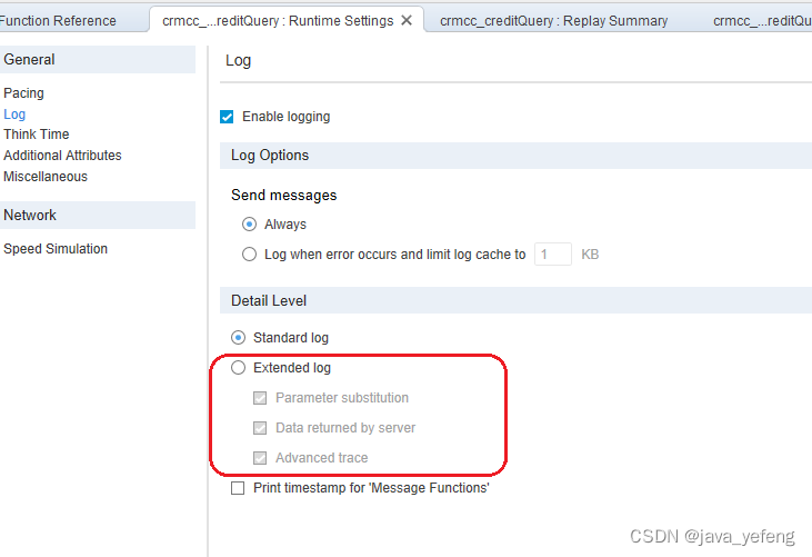 - 打开详细日志步骤:运行时设置-》日志-》详细等级-》拓展日志;