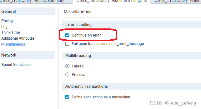 1为参考值,并发不是要求很高且接口真实TPS比并发数高的情况下,设置1可以保持和并发数一样的TPS,且报错量较少。 - 压测过程中出现报错,引起Vuser不断减少,可以通过设置报错后继续解决,如下图(LoadRunner12截图):