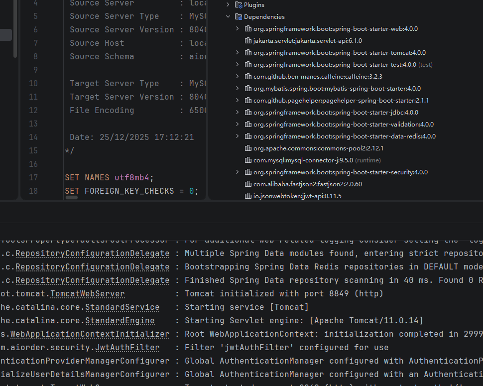 大家好,我是 架构师 Sail,之前的点餐用的pgsql版本,今晚发布了mysql版本和spring boot 升级到了4.0.0。pgsql版本后面会升级到4.0.0结合ai助手一起更新。