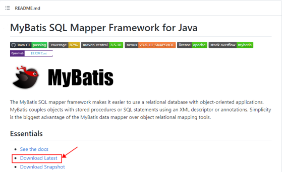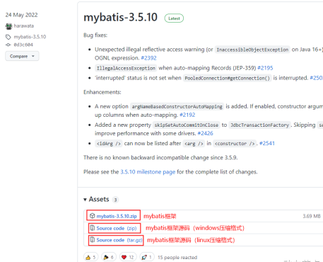 - 将框架以及框架的源码都下载下来,下载框架后解压,打开mybatis目录