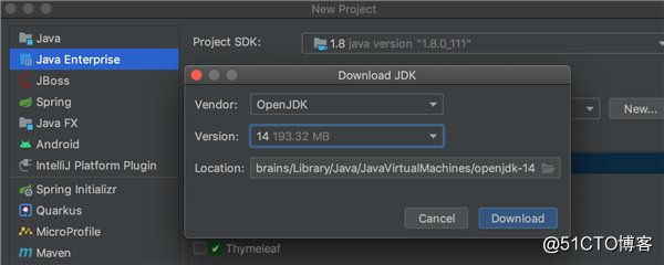 从 IntelliJ IDEA 2020.1 开始,可在创建和配置项目时直接从 IDE 下载并配置 JDK。如果打开已下载的项目,IDE 会检查机器是否已安装为该项目配置的 JDK,若缺少,则提示下载。
