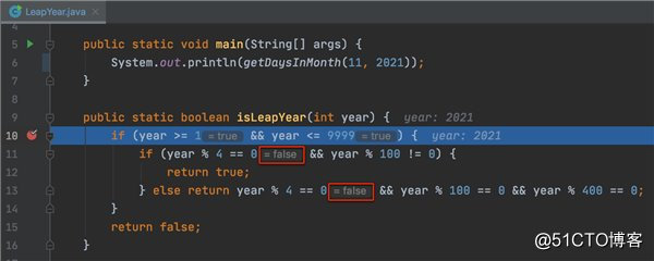 IntelliJ IDEA 2020.1 向调试器添加了数据流分析协助功能(Dataflow analysis assistance),此功能根据程序执行的当前状态预测并显示可能的异常以及始终为真/假的条件。