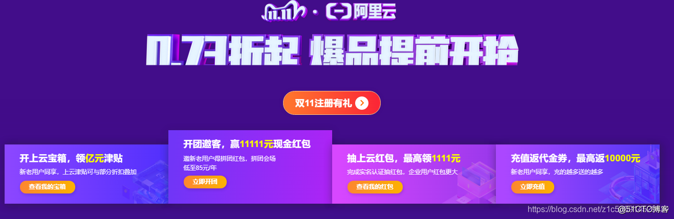 阿里云拼团:拼团模式已经成为阿里云双十一的保留活动,所以每逢此项佳节来临,总能引来无数用户的垂青与关注,详细内容可点击了解:阿里云拼团