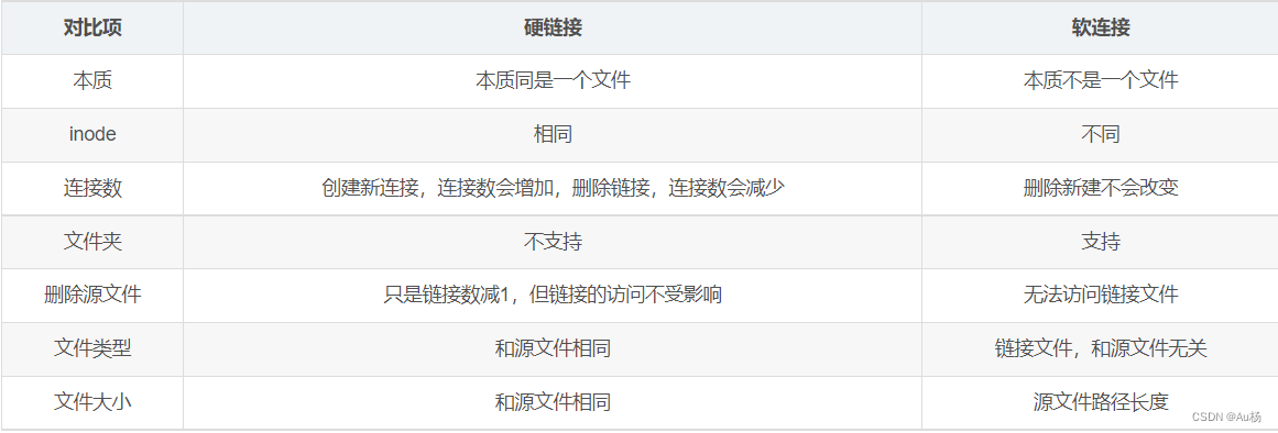 分类: 软连接(又称为符号链接)和硬链接 格式:ln [-s] 源文件或目录...链接文件或目标位置(加-s为软连接,不加为硬链接)