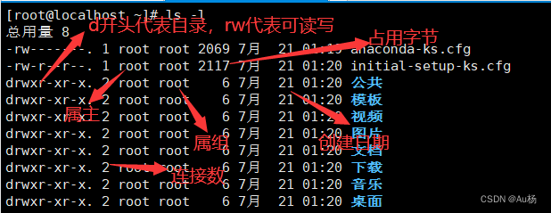 ls -a: 显示所有子目录和文件的信息,包括.和..