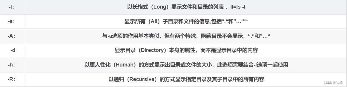 ls -A: 显示所有子目录和文件的信息,不包括.和..