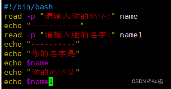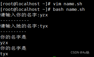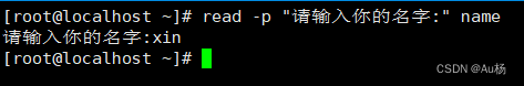 [root@localhost ~]#read -p "请输入你的名字:" name