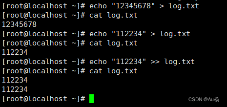 #继续将112234写入log.txt中,使用>>,这个时候会追加原来的数据