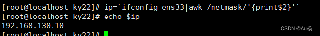 [root@localhost data]#ip=`ifconfig ens33|awk /netmask/'{print $2}'`