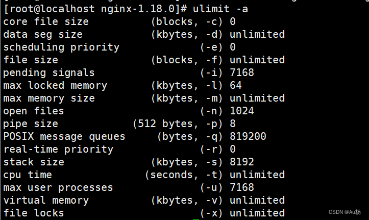 3.可使用ulimit -a命令查看系统允许当前用户进程打开的文件数限制。
