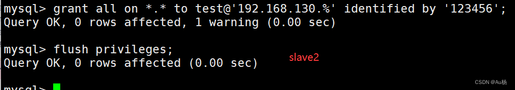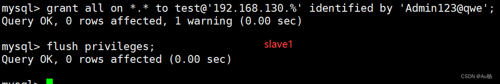 5.#先在Master、Slave1mysql上开放权限给 Amoeba 访问