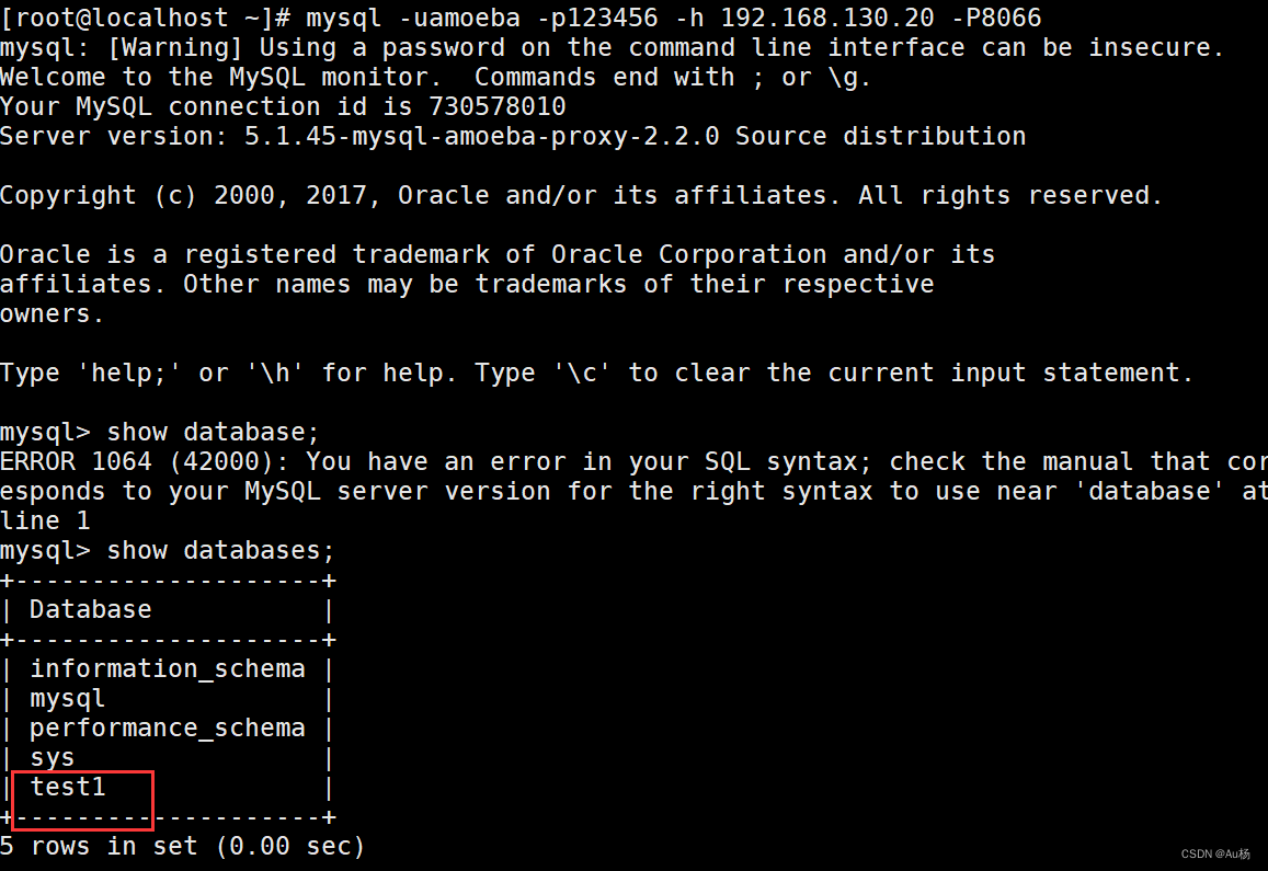 mysql -uamoeba -p123456 -h 192.168.130.40 -P8066