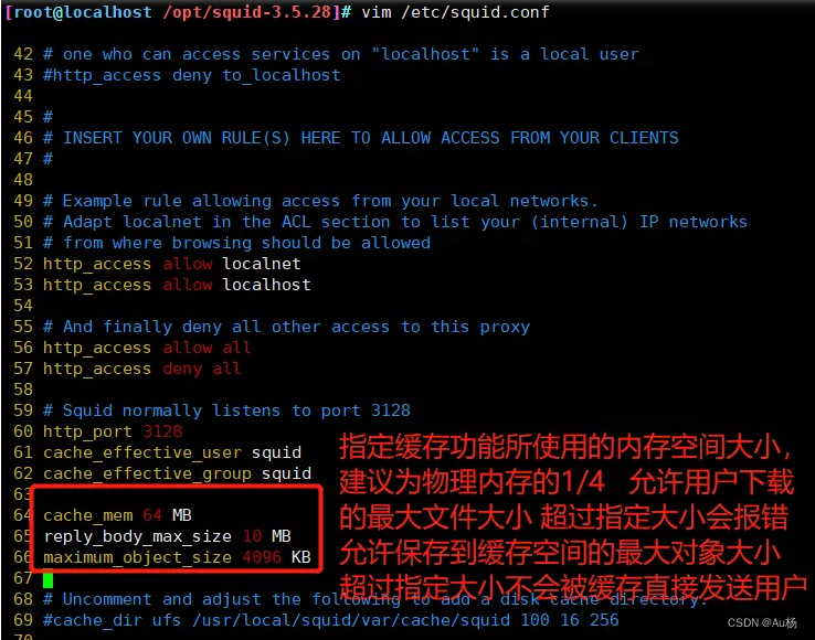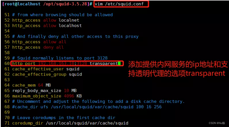 http_port 3128 #用来指定代理服务监听的地址和端口(默认的端口号为 3128)