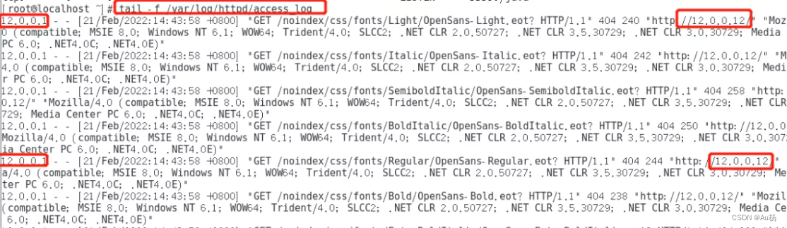 #从日志内容可以看出是代理服务器外网口12.0.0.1访问web服务器12.0.0.12