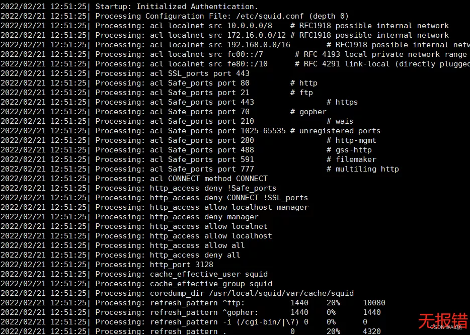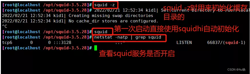 启动 Squid,第一次启动squid服务时,会自动初始化缓存目录