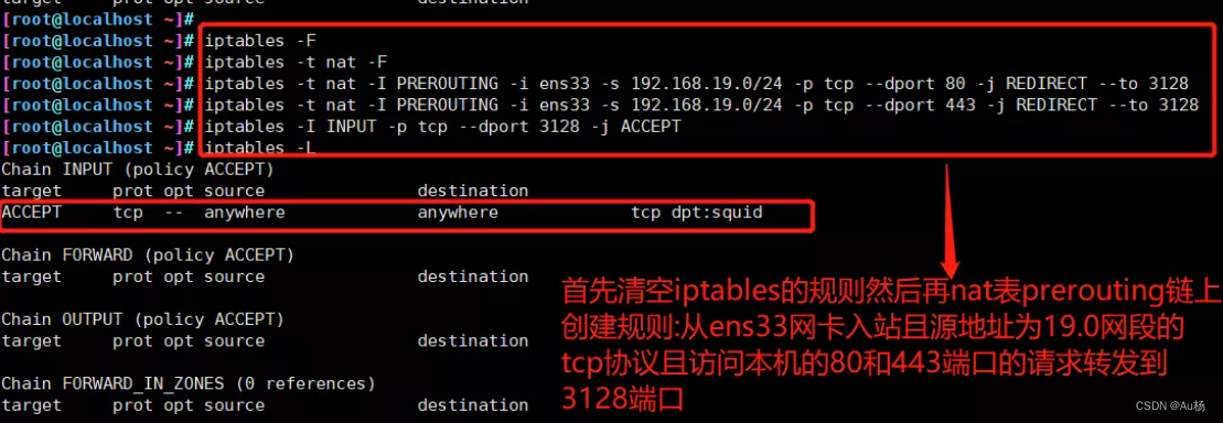 透明代理:客户机不需指定代理服务器的地址和端口,而是通过默认路由、防火墙策略将Web访问重定向给代理服务器处理。