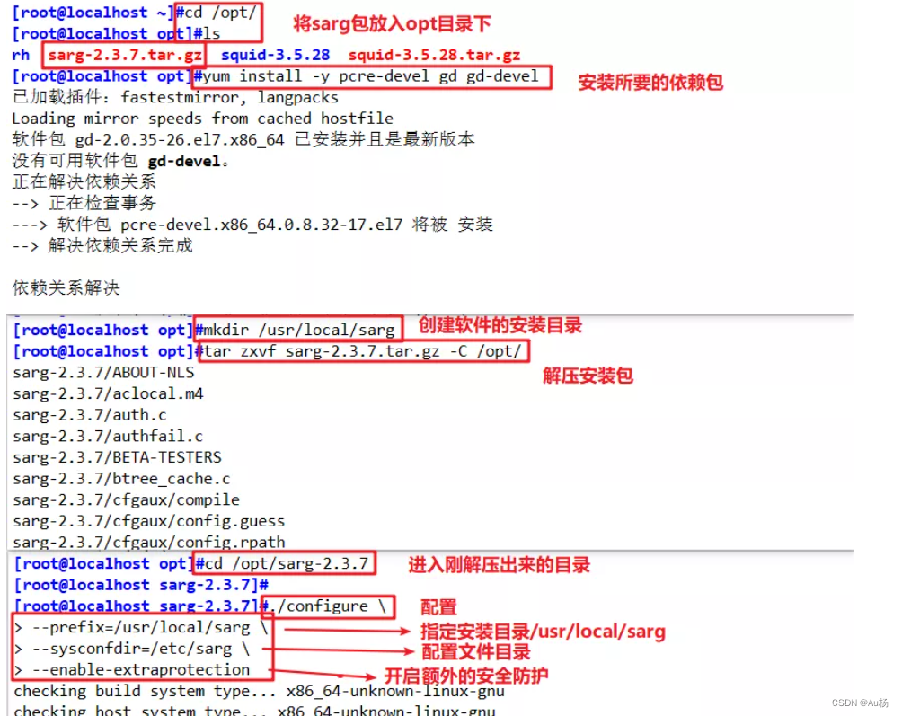 tar zxvf sarg-2.3.7.tar.gz -C /opt/