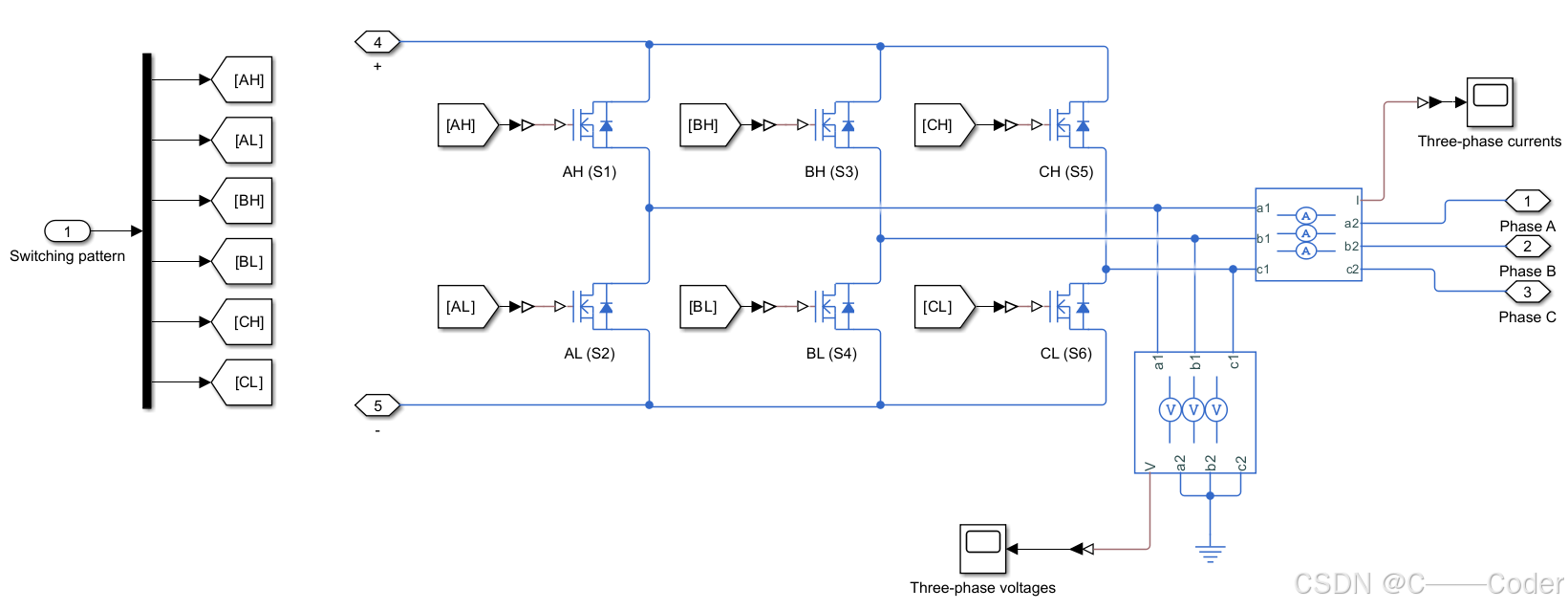按照如下建立好三相逆变器的子系统,使用Goto模块和From模块控制mos管的开关