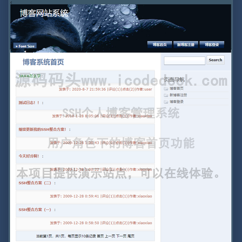 #### SSH个人博客管理系统-用户角色-博客首页↓↓