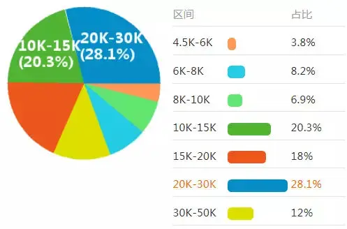 招聘待遇:工资20k以上占比最多,达40%。