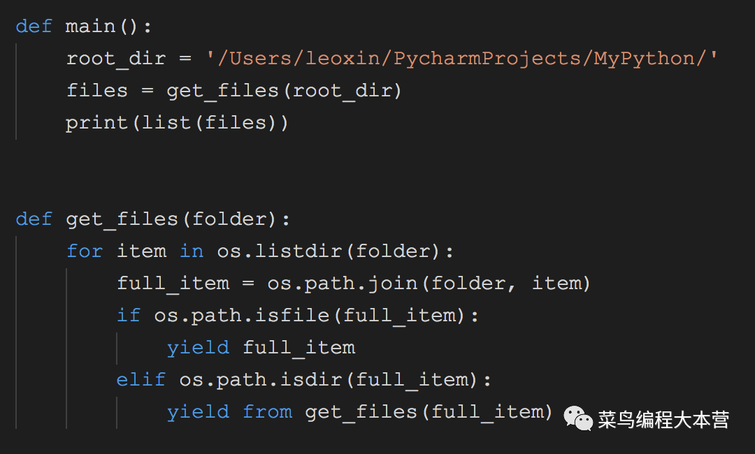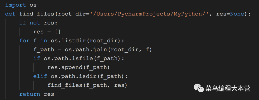 传统的做法是里面函数里面放一个列表来递归存储 搜索的文件名,这样的写法不错,但是不是很老道,也不是很pythonic,有更简便的方法吗,当然有接着往下看这一招。
