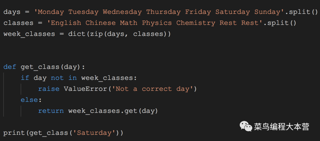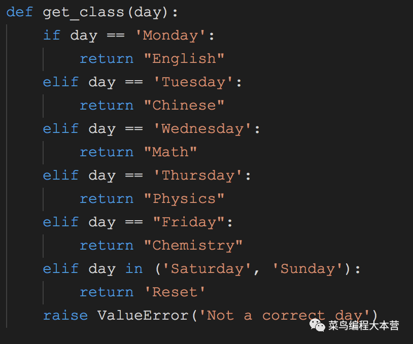 我们在平时项目的时候会经常遇到大量的if/elif 这样的情况,非常常见,通常我的写法如下,比如一个每周上周的情况: