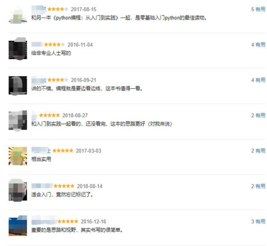这是90%学习#python#的都会选择作为入门的第一本书。对0基础读者非常友好,每一个基础知识都花了很重的笔墨去讲解。理论和实践恰到好处,行文逻辑流畅,不跳跃,手把手教的感觉,却绝不啰嗦,非常适合入门。