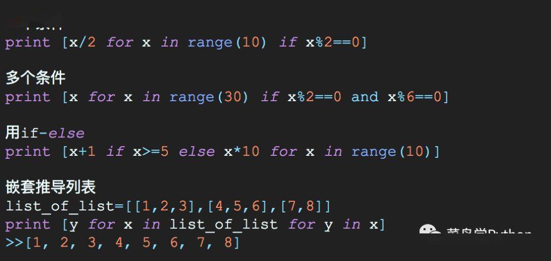 推导列表应该是我最喜欢的一种Pythonic方式,它的演变有很多手法,这几种都是非常常见的,多读几遍,背下来!