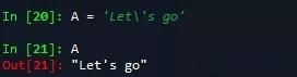 值得注意的是当字符串两端引号中间还出现引号的时候,需要在中间的引号之前加上转义字符反斜杠(\),如: