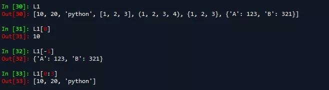 使用方括号(如[0])即可索引列表中的值,同样也可以使用方括号(如[2:5])的形式截取列表元素,列表索引从0开始,如: