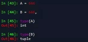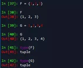 当元组只有一个值的时候要区分开元组和数值类型的不同,如代码中第一个为数值类型,第二个为元组类型。