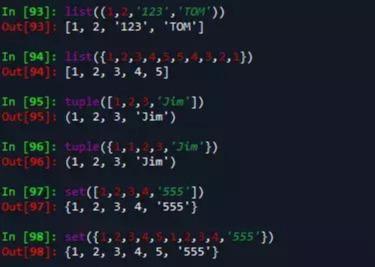 (2)列表、元组、集合之间的相互转化
