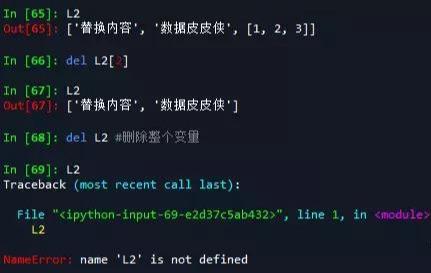 删除元素直接用del函数删除索引出的元素,如:
