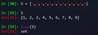 使用大括号({ })或者set( )函数来创建集合,集合的作用很多时候可以用列表来代替,它的特点主要是可以用来删除重复元素,如下代码中1、2、3、4重复的元素只会出现一次: