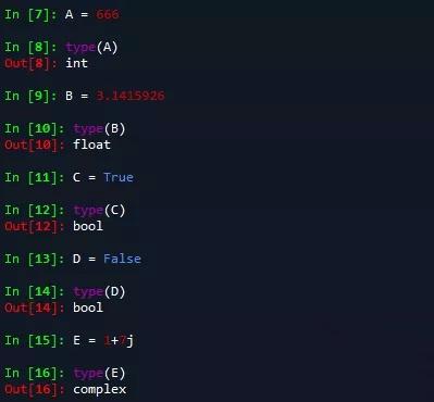 注:A为整型变量、B为浮点型变量、C和D为布尔型变量、E为复数型变量