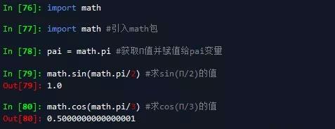 应用:求sin(Π/2)和cos(Π/3)的值,如下:
