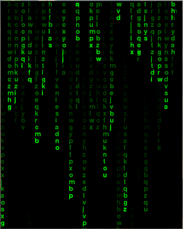 接着,我们再来实现字母雨,实现方式基本就是将上面实现数字雨的数字换成字母,代码实现如下:
