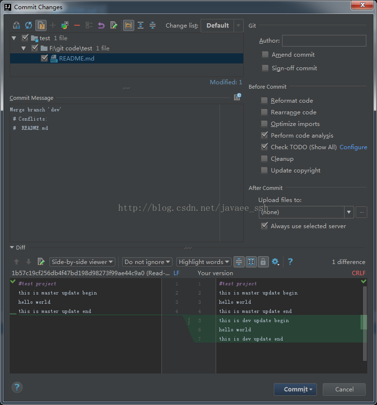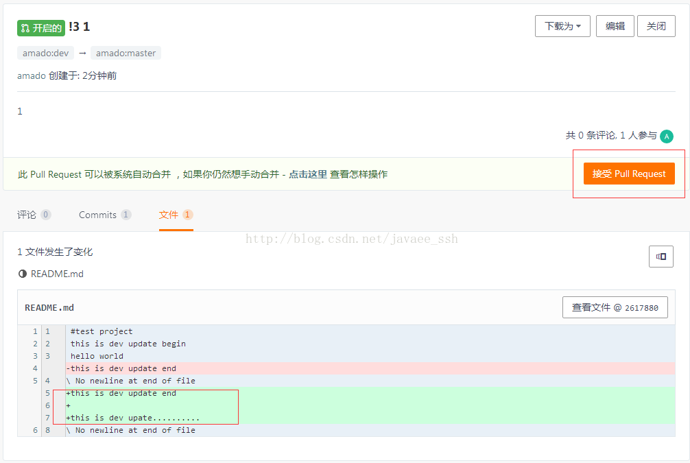 3、合并代码后提交