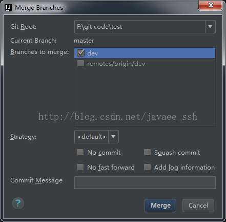 1、切换到master分支选择要合并的dev分支