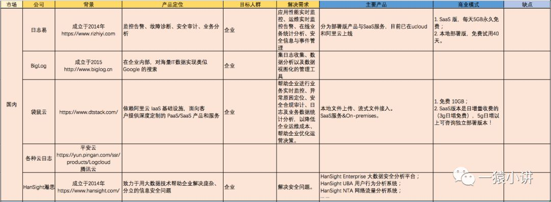 看完国外的市场,不妨再来看看国内的市场。国内做日志分析管理的如上图示意(图看不清,放大了去看,我已是尽力截图了),咱们毕竟不是专业的评判家,不过多去说,重在体验。