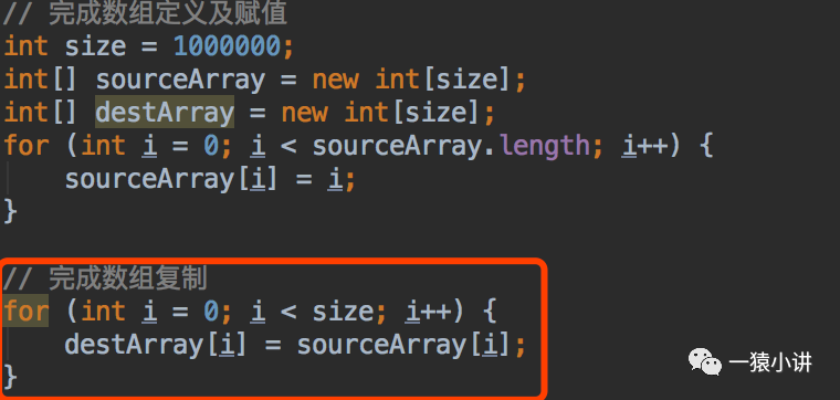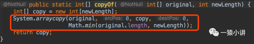 红色圈住部分,在本机跑起来验证,方式一、方式二,差距不是特别大,在数据量大的时候,System.arraycopy() 还是稍微好一点。